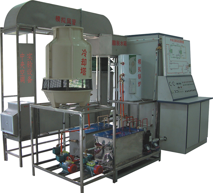 中央空調(diào)實驗設備是將中央空調(diào)微型化,同時保持整個中央空調(diào)系統(tǒng)的完整性和合理性。本實驗系統(tǒng)采用微機控制能單獨演示中央空調(diào)的夏天制冷、冬天制熱循環(huán),控制系統(tǒng)由電腦控制與手動控制二種方法演示。為了解各種參數(shù)的變化情況和系統(tǒng)的工作狀況。實驗臺增加了一些輔導結(jié)構,使其能人為地制造各種實際中可產(chǎn)生的系統(tǒng)故障,方便學員了解故障的產(chǎn)生和排除故障的方法。