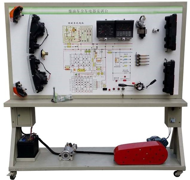 全車電路板試教板教學(xué)設(shè)備采用 全新東風(fēng)牽引車EQ2102 柴油機(jī)整車電器實(shí)物為基礎(chǔ),充分展示汽車儀表系統(tǒng)、燈光系統(tǒng)、雨刮系統(tǒng)、喇叭系統(tǒng)、發(fā)動(dòng)機(jī)電器系統(tǒng)、起動(dòng)系統(tǒng)和充電系統(tǒng)等汽車電器各系統(tǒng)的組成結(jié)構(gòu)和工作過程。
