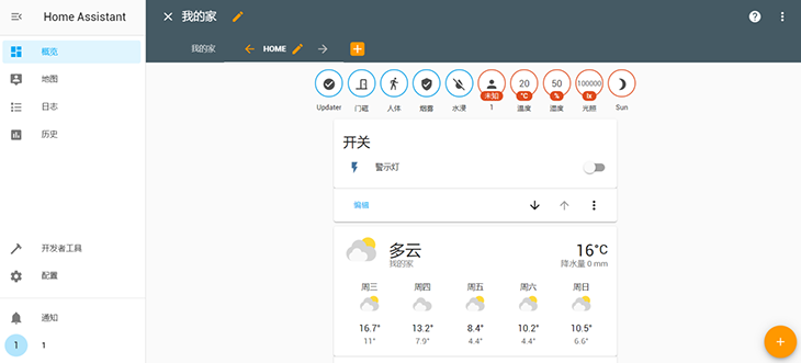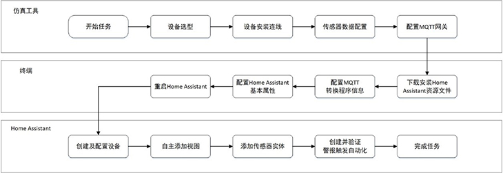 圖:智能家居課程案例,使用自動化智能家居平臺Home Assistant,對安裝好的感知層設(shè)備進行數(shù)據(jù)的瀏覽和各種自動或手動的執(zhí)行操作。