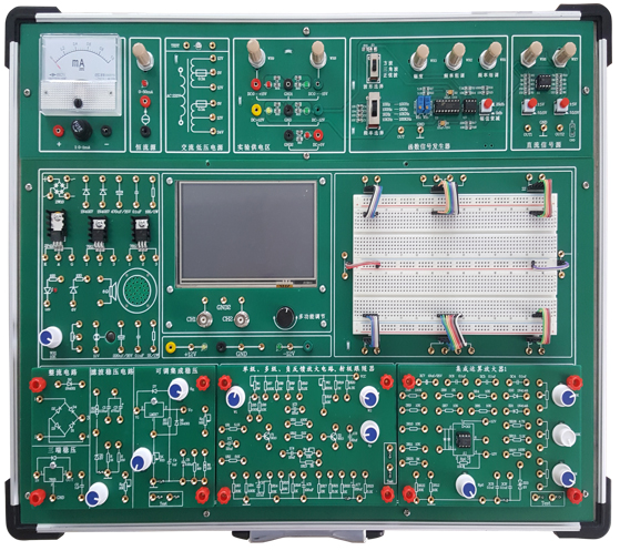 含機箱、工作電源、常用模擬信號源、實驗電路區(qū)和分立元件和測量儀器等 |